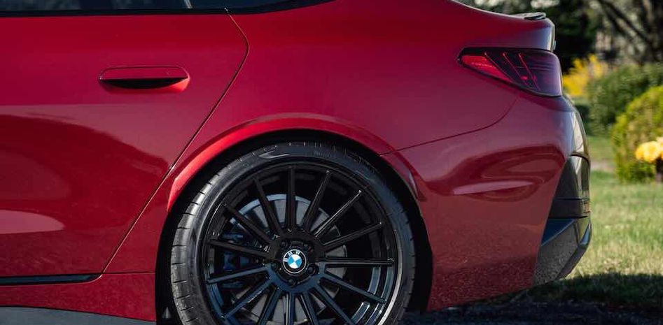2025 BMW i4 M50 with a clean and elgant look lowered on H&R Springs, and accompanied with a set of Road Force wheels RF15 in Gloss Black.